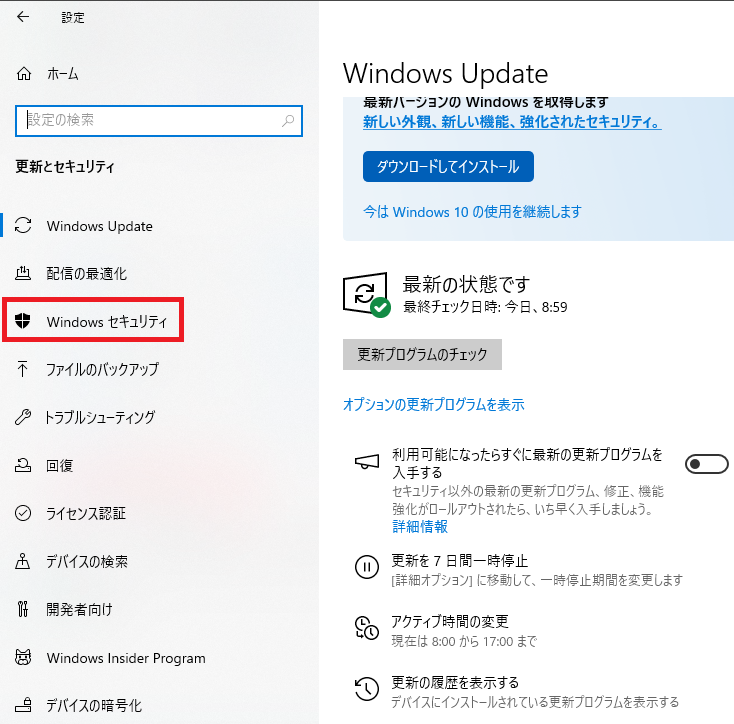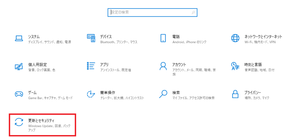 更新とセキュリティを開く(Windows10の場合)
