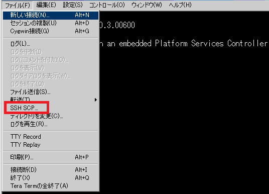 TeraTermだと、ファイル⇒SSH SCPを選択して転送を行います。