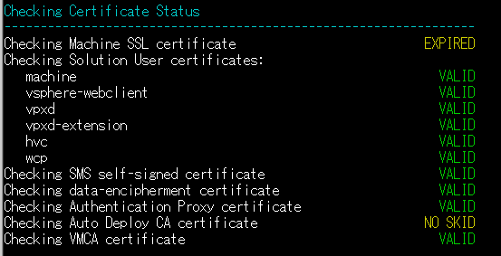 上記のように、Machine SSL certificateが「EXPIRED」になっている状況で、証明書の期限が切れている事が分かります。